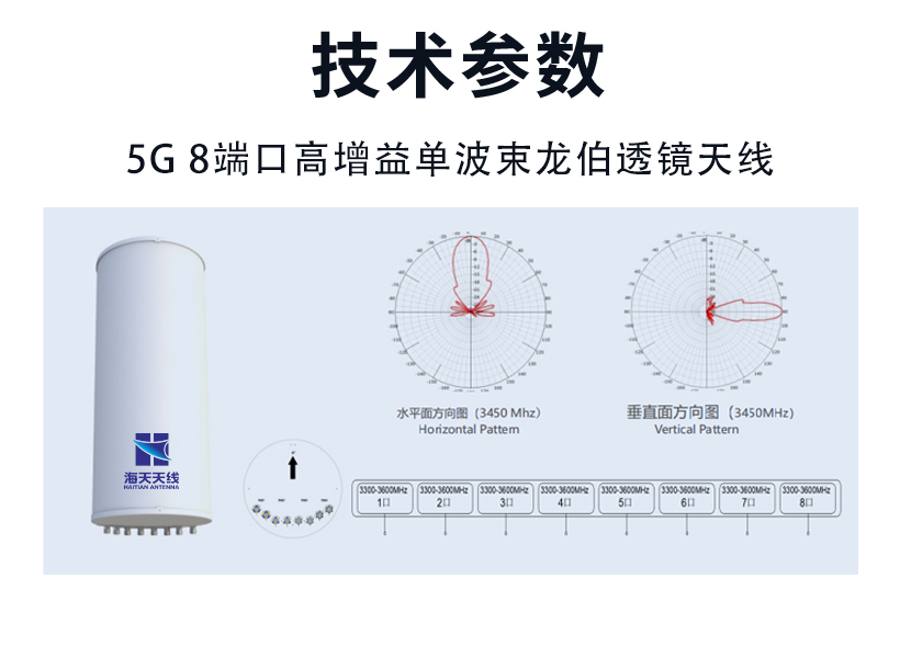 5G 8端口高增益单波束龙伯透镜天线 价格: